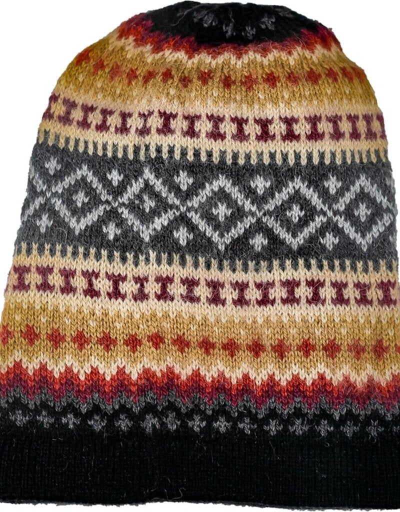The Sierra alpaca hat has an updated nordic pattern style and is available in multiple colors. Super soft to wear, they are handknit from a blend of alpaca and acrylic fibers by Fair Trade women artisans in Peru and Bolivia!